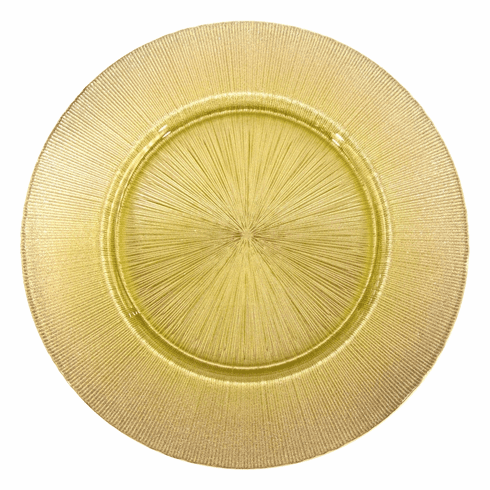 Impress your guests when you dish up on this beautiful stripe textured 13" charger plate with glitter details on the rim. Crafted in glass, this charger plate will complete your table setting with its sophisticated design. Perfect for adding a rich yet organic look to your dinner parties or your wedding, shower, and party buffets.